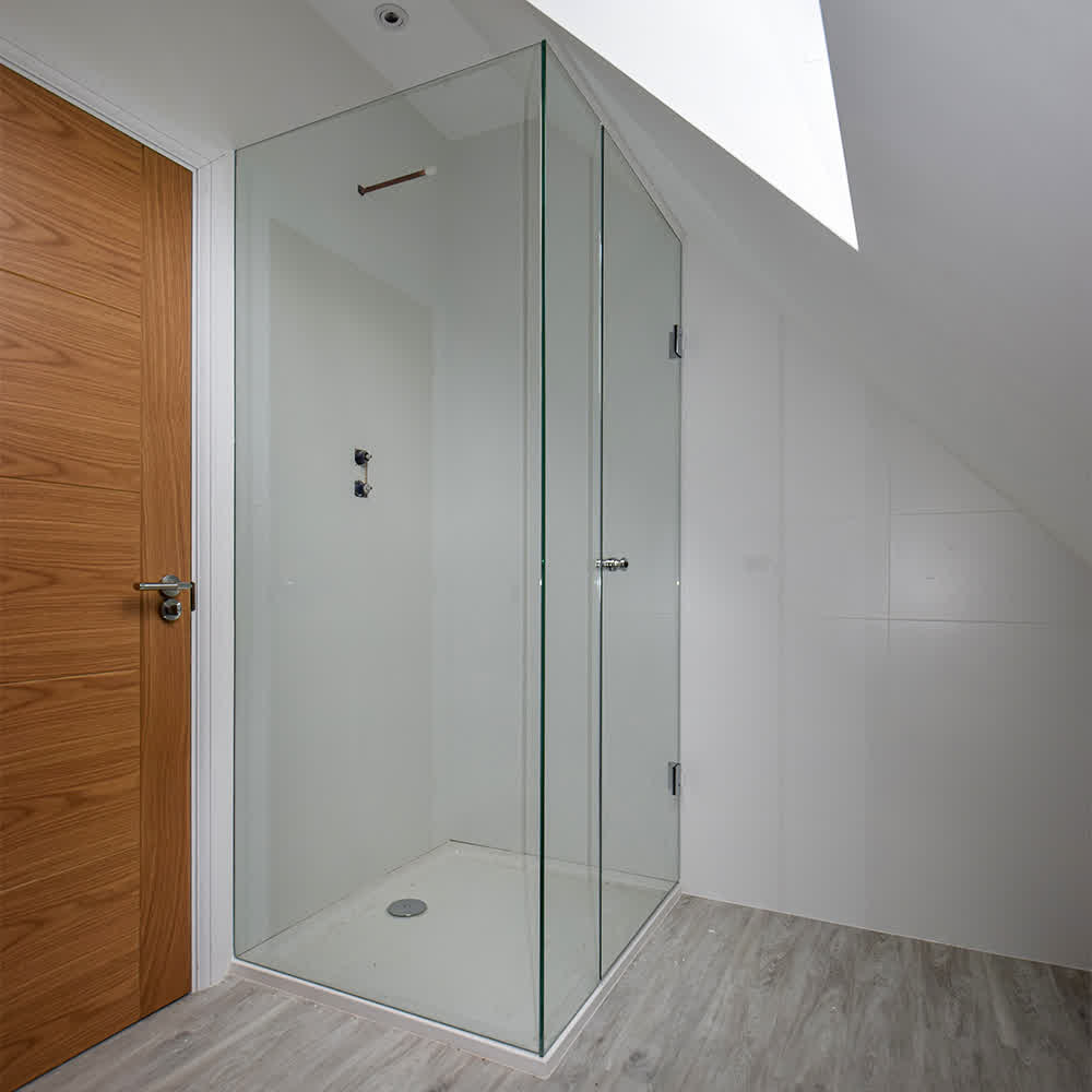 We take care of everything for your hinged or bifold shower doors. We not only produce them but also supply them as a package. Our hinged doors always include a site survey, design, production, and installation services.